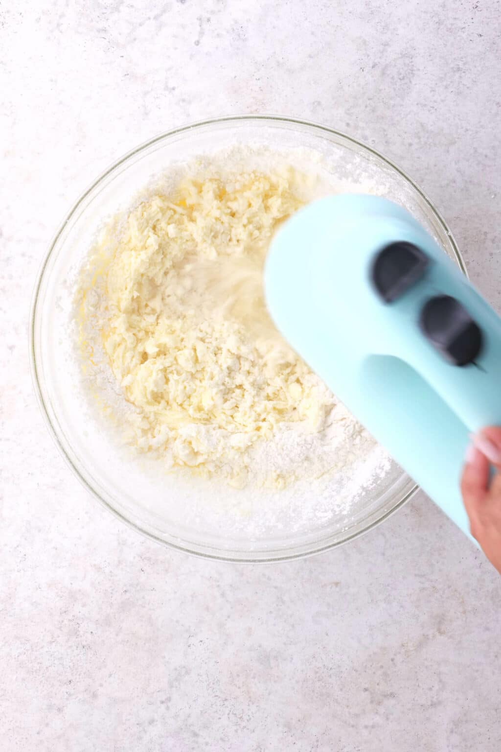 Beat softened butter and sugar with an electric mixer on medium speed. Keep going for about 5 minutes until the mixture is light and fluffy. This step creates the crackly tops.